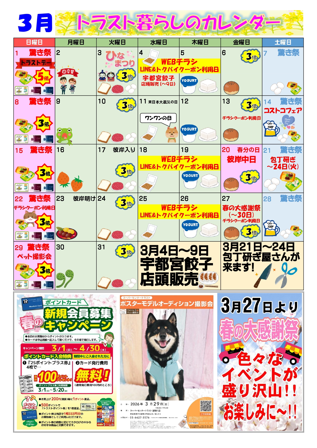 【スーパーセンタートラスト雄物川店】3月暮らしのカレンダー
