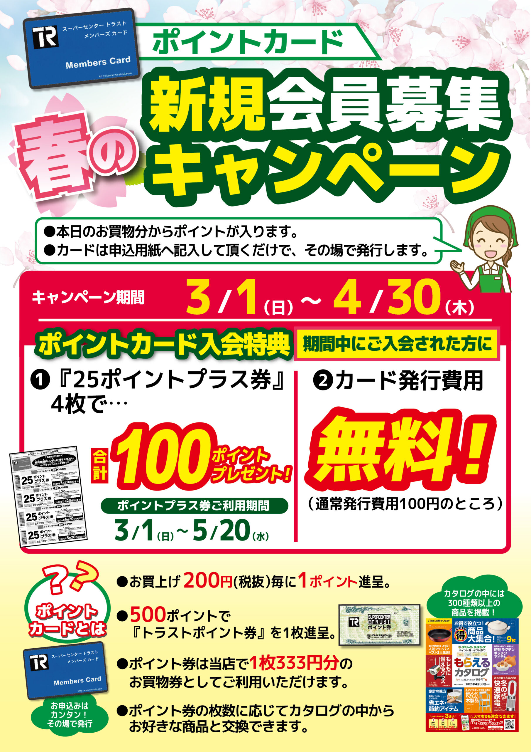 【スーパーセンタートラスト各店】トラストポイントカード春の新規会員募集キャンペーン!!