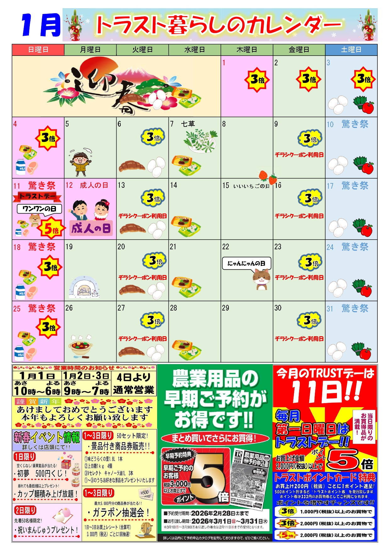 【スーパーセンタートラスト岩出山店】1月の暮らしのカレンダー