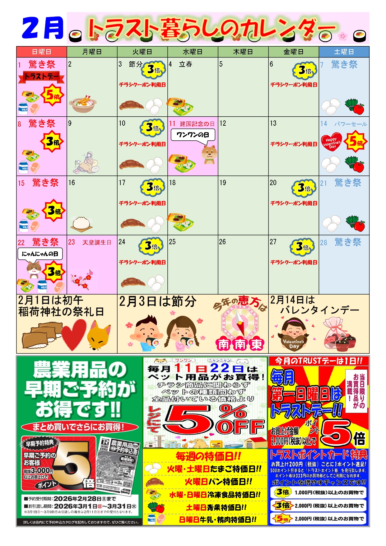 【スーパーセンタートラスト岩出山店】2月の暮らしのカレンダー