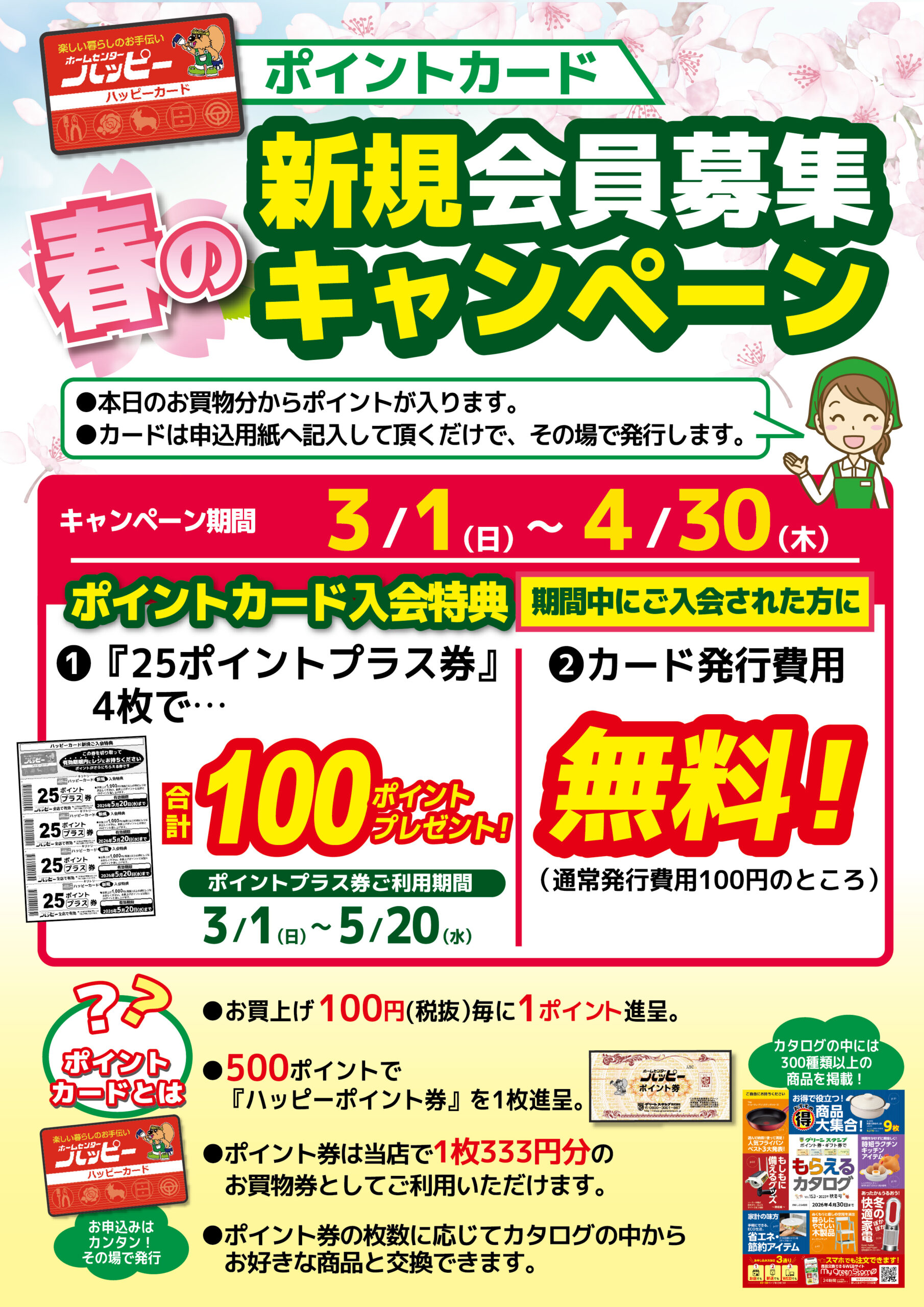 【ホームセンターハッピー各店】ハッピーカード春の新規会員募集キャンペーン!!