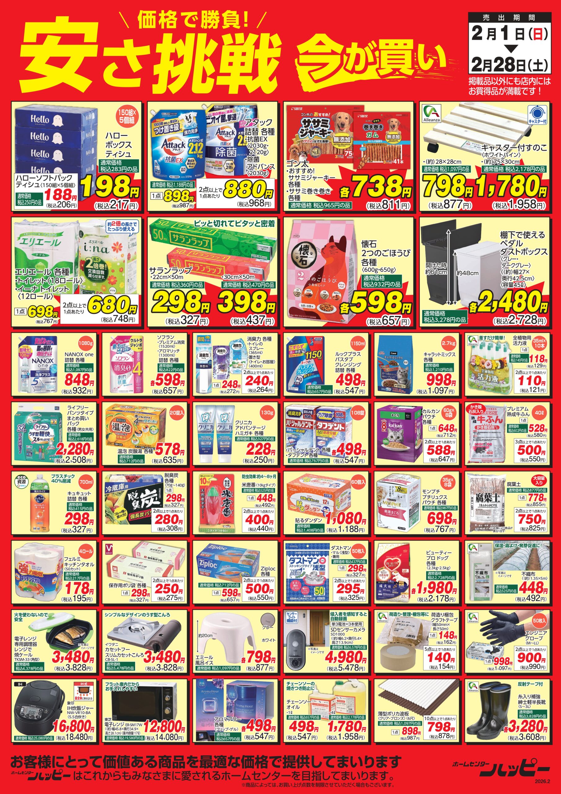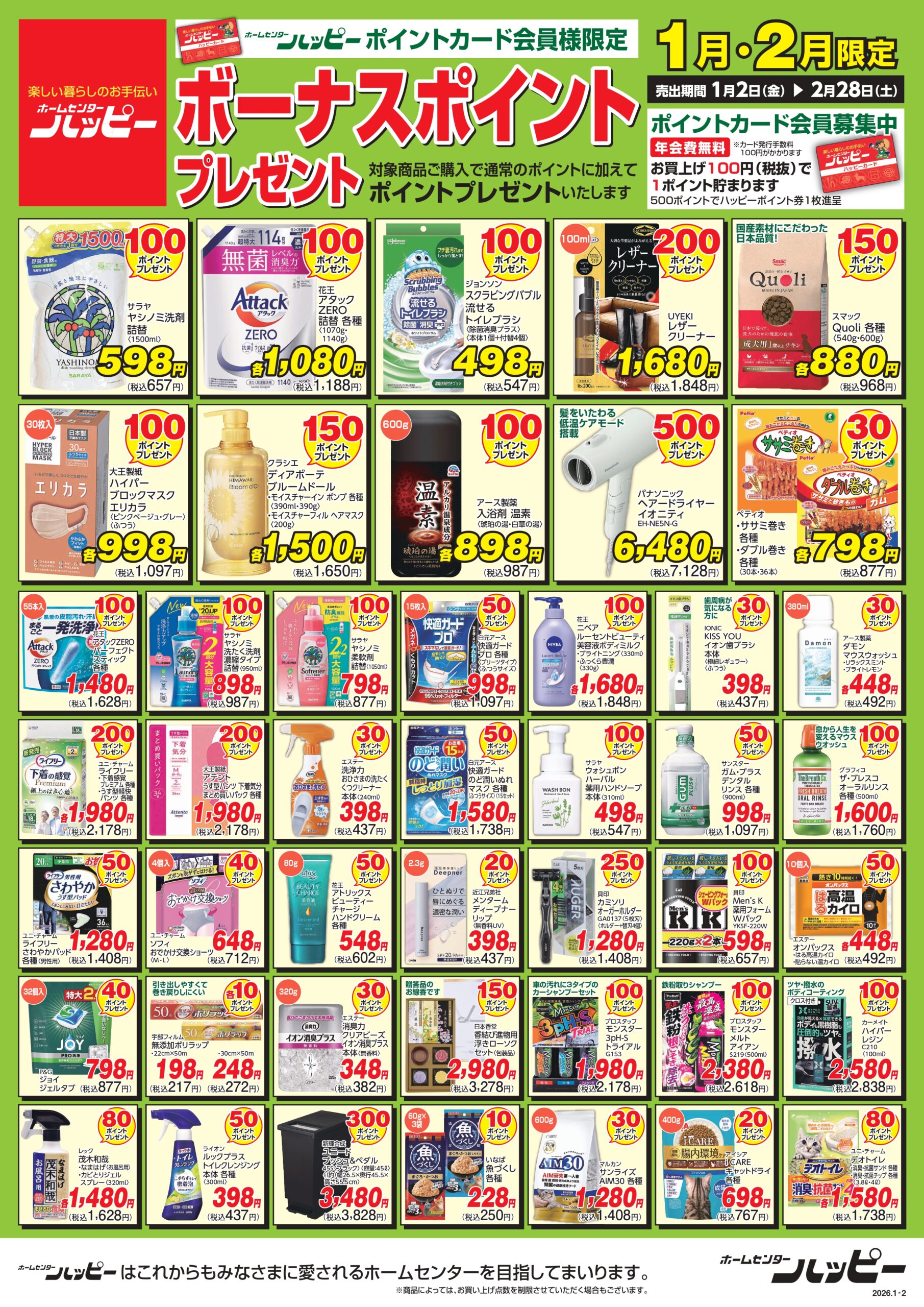 【ホームセンターハッピー各店】安さ挑戦(2月)&ボーナスポイント(1月~2月)のお知らせ